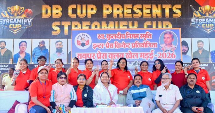 रायपुर प्रेस क्लब द्वारा स्वर्गीय कुलदीप निगम की स्मृति में खेल मड़ई के अंतर्गत नेताजी सुभाष स्टेडियम, रायपुर में इंटर प्रेस क्रिकेट प्रतियोगिता का आयोजन किया जा रहा है। प्रतियोगिता में पत्रकार जगत की विभिन्न टीमों के बीच उत्साहपूर्ण और रोमांचक मुकाबले खेले जा रहे हैं। आयोजन का उद्देश्य पत्रकारों को उनकी व्यस्त दिनचर्या से कुछ समय निकालकर खेलों से जोड़ना, आपसी सौहार्द को बढ़ावा देना और स्वस्थ जीवनशैली के प्रति जागरूक करना है।