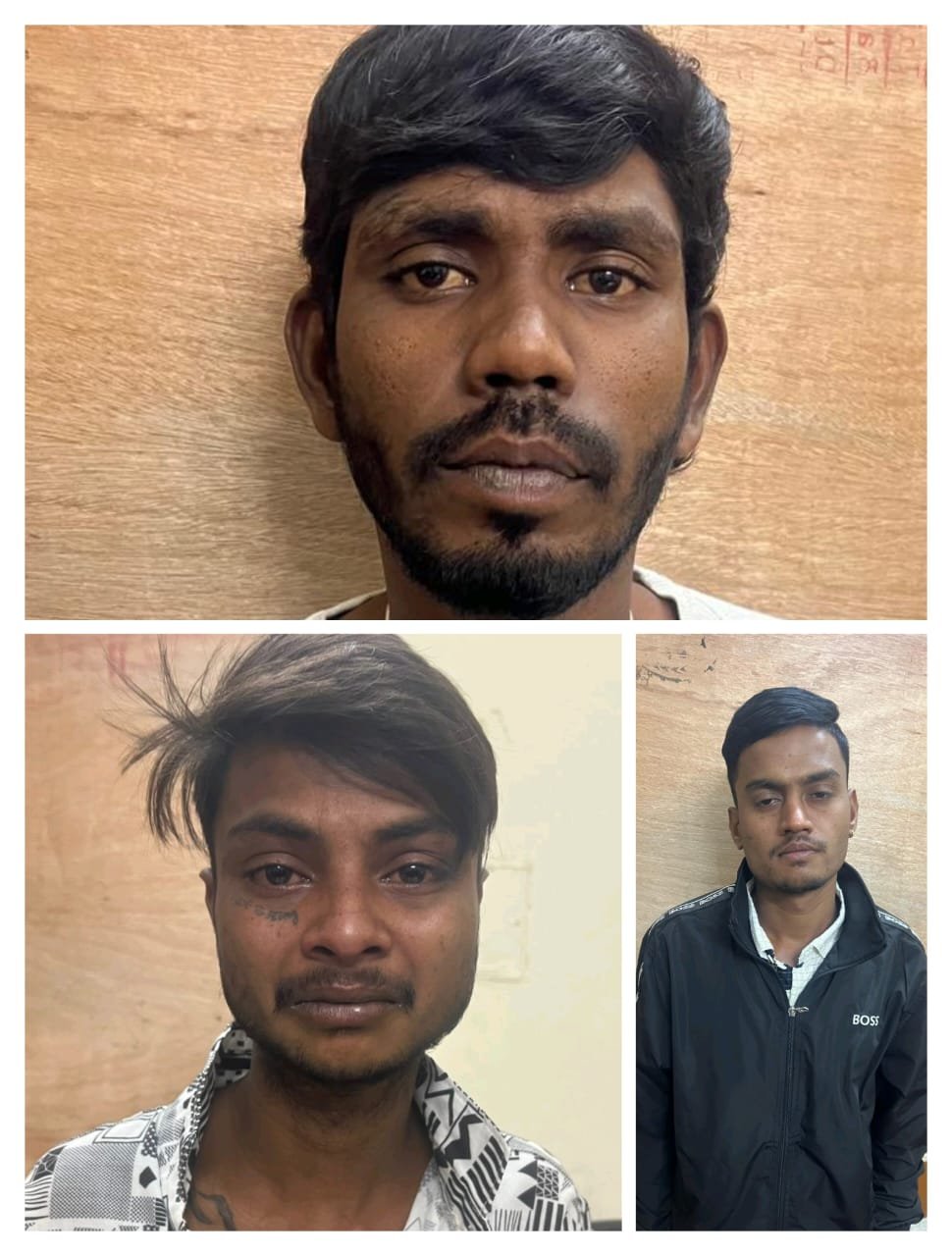 वरिष्ठ अधिकारियों के निर्देशन में एण्टी क्राइम एण्ड साईबर यूनिट तथा थाना गंज पुलिस की संयुक्त टीम द्वारा मौके पर पहुंचकर मुखबिर द्वारा बताए गए हुलिए के व्यक्तियों की पतासाजी की गई। संदिग्ध व्यक्तियों को चिन्हांकित कर पकड़ा गया। पूछताछ में उन्होंने अपने नाम गोपी सागर, नरेन्द्र सागर एवं विक्की बेहरा, निवासी थाना कोतवाली रायपुर, बताया।