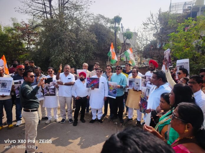 रायपुर शहर जिला कांग्रेस कमेटी अध्यक्ष आदरणीय श्री कुमार शंकर मेनन जी के नेतृत्व में एक्सप्रेस हाईवे के शंकर नगर और पंडरी के बीच बड़े नाले (अरमान नाला )में पीडब्ल्यूडी और नगर निगम के लापरवाही से मोटर साइकिल सहित गिरने से घायल हुए युवक जिसकी जान ,बाल बाल बची और पूरे शहर में जगह जगह ऐसे जानलेवा डेथ ट्रैप और मोड़ के खतरों के प्रति पीडब्ल्यूडी और निगम प्रशासन का लापरवाह रवैया लोगो की जान के लिए खतरा बनता जा रहा है खमारडीह में भी निगम द्वारा बनवाए जा रहे अनावश्यक नाली और उसके बाजू के ब्रेकर के कारण एक युवक सोहन गुप्ता की असामयिक मौत के जवाबदार लोगो को जगाने एक्सप्रेस हाईवे के उक्त स्थल पर आज विरोध प्रदर्शन किया गया ,पीडब्ल्यूडी के अधिकारी को तत्काल मौके में बुलाकर उस स्थान को सुरक्षित कर वाल करने बोला गया