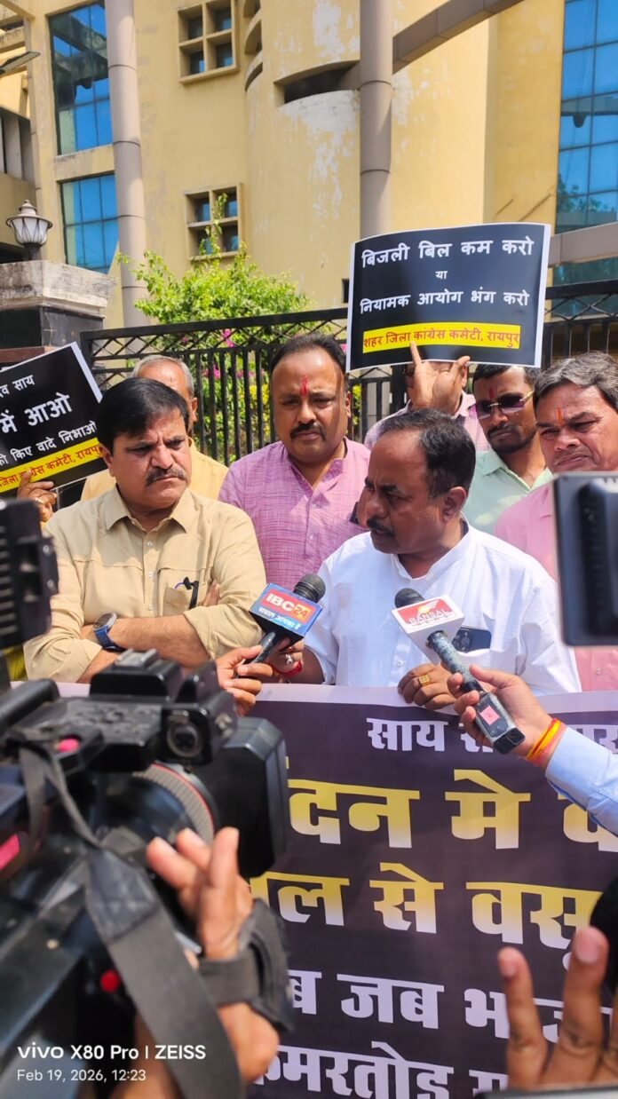 बिजली बिल कम करो या नियामक आयोग भंग करो बिजली बिल के माध्यम से सरकारी लुट का विरोध कर धरना प्रदर्शन किया गया शहर जिला कांग्रेस कमेटी के अध्यक्ष श्री कुमार शंकर मेनन के नेतृत्व मे पूर्व लोकप्रिय विधायक कुलदीप जुनेजा जी, पूर्व महापौर प्रमोद दुबे जी, कांग्रेस नेता सुशांत डे जी सहित बड़ी संख्या मे कांग्रेस जन उपस्थित हुये