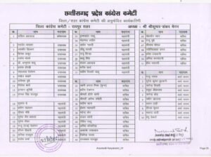 छत्तीसगढ़ प्रदेश कांग्रेस कमेटी जिला एवं शहर कांग्रेस कमेटी की अनुमोदित कार्यकारिणी की सूची हुई जारी जिसमें की सुशांत दे बने रायपुर शहर के महामंत्री देखिए सूची पूरी लिस्ट